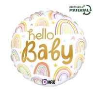45cm Round Hello Baby Rainbow Foil Balloon #26002PP - Each (Pkgd.)
