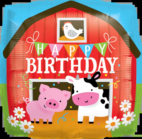 45cm Square Foil Birthday Barn #26549 - Each (Pkgd.)