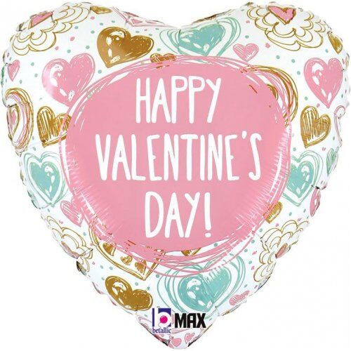 45cm Valentine Doodles Heart Foil Balloon #30G26151P - Each (Pkgd.)
