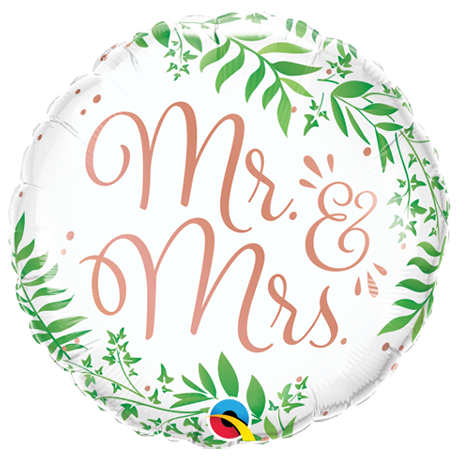 45cm Wedding Mr & Mrs Elegant Greenery Foil Balloon #10402 - Each (Pkgd.)