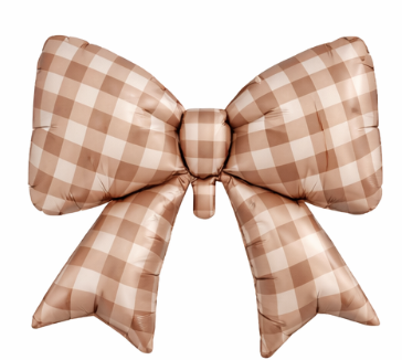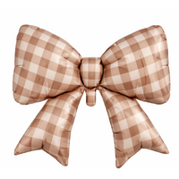 • 50cm Shape Bow Matte Brown Gingham Foil Balloon #SWB02BGINGBOW - Each (Unpkgd.)