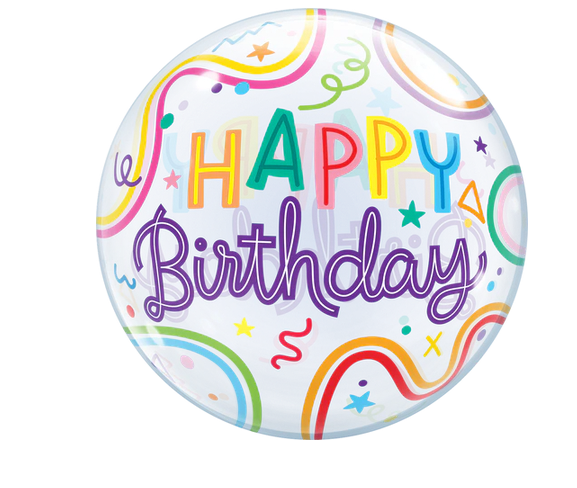56cm Single Bubble Bday Swiggle Lines & Stars #24910 - Each (Pkgd.)