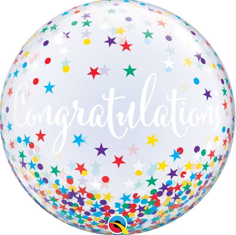 56cm Single Bubble Congratulations Confetti Stars Balloons #17421 - Each