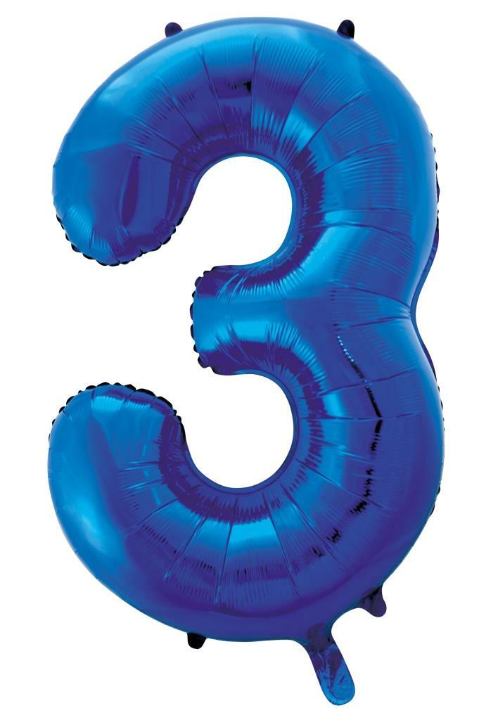 86cm Number 3 Blue Foil Balloon #30213733 - Each (Pkgd.)