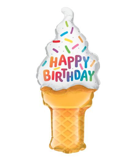 Mini Shape Birthday Ice Cream Cone Foil Balloon 35cm #25563AF - Each (Inflated, supplied air-filled on stick) TEMPORARILY UNAVAILABLE