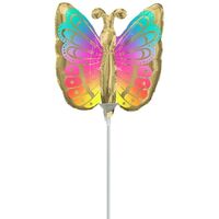 Mini Shape Colourful Butterfly Foil Balloon #4044230AF - Each (Inflated, supplied air-filled on stick)