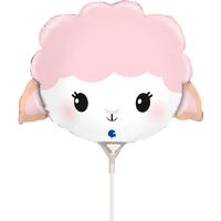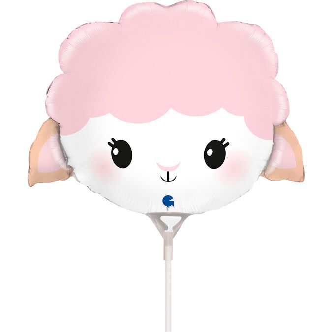 Mini Shape Cute Sheep Foil Balloon #G72162AF - Each (Inflated, supplied air-filled on stick)
