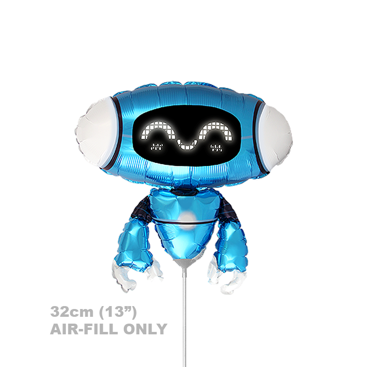 Mini Shape Robot Blue Foil Balloon 32cm #25902892AAF - Each - Each (Inflated, supplied air-filled on stick)