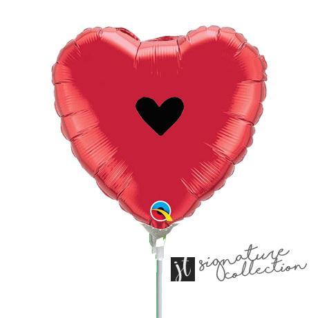10cm Signature Heart Black Red Foil Balloon #JT1018 (Inflated, supplied air-filled on stick)