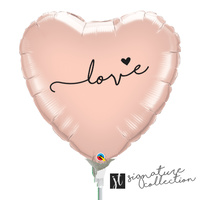 22cm Love Script Heart Rose Gold Foil Balloon #JT1020 (Inflated, supplied air-filled on stick)