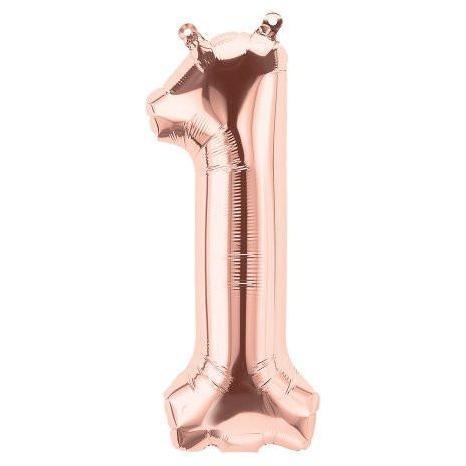 41cm Number 1 Rose Gold Foil Balloon - Air Fill ONLY #59103 - Each (Pkgd.)