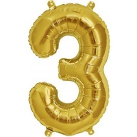 41cm Number 3 Gold Foil Balloon - Air Fill ONLY #59047 - Each (Pkgd.)