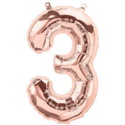 41cm Number 3 Rose Gold Foil Balloon - Air Fill ONLY #59107 - Each (Pkgd.)