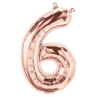 41cm Number 6 Rose Gold Foil Balloon - Air Fill ONLY #59113 - Each (Pkgd.)