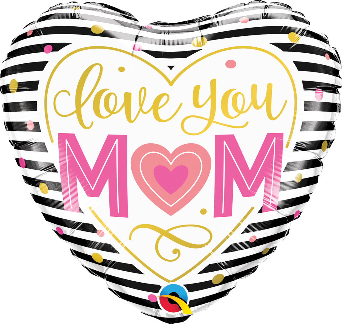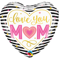 45cm Heart Foil Love You M(Heart)M Stripes #55824 - Each (Pkgd.)