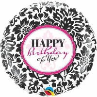 45cm Round Foil Birthday Elegant Damask #30986 - Each (Pkgd.)