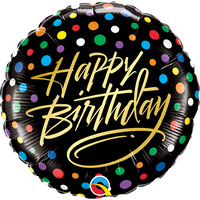 45cm Round Foil Birthday Gold Script & Dots #57295 - Each (Pkgd.)